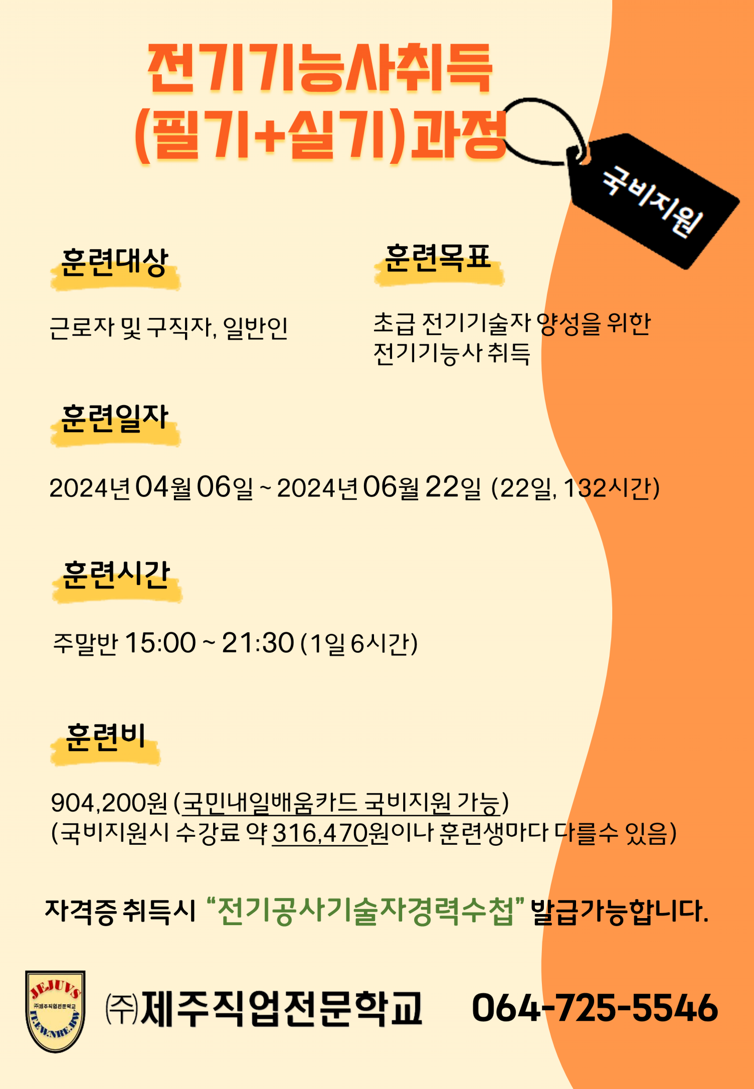 2024년 전기기능사 취득과정 (필기+실기) 1회차 모집 안내