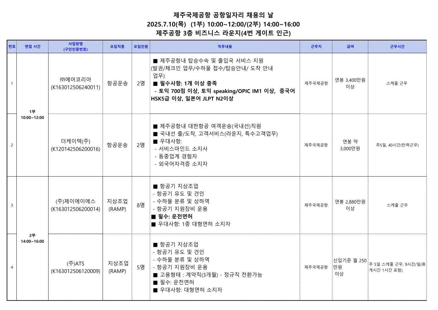 제주특별자치도 고용센터 7월 구인구직 만남의 날 행사 관련하여 안내 드립니다.