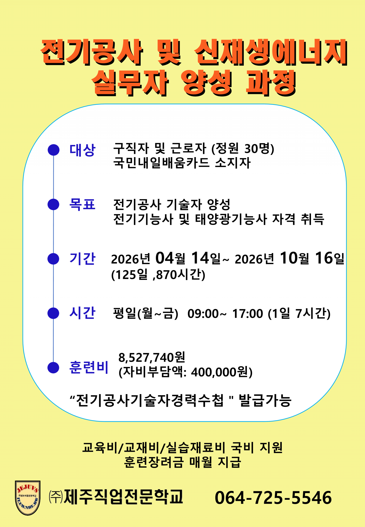 • 2026년 (국기)전기공사 및 신재생에너지 실무자 양성과정 1회차 개설안내!